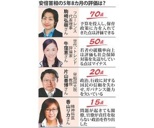 東日本大震災後に政権を担い、相次ぐ大規模な災害に対しても対応に尽力してきた」としたうえで、「社会保障への将来不安に抜本的な対策をせずに先送りをしてきたことはマイナス。経済でも、長期政権なのだから、成長戦略などで大胆な施策が~~~」
